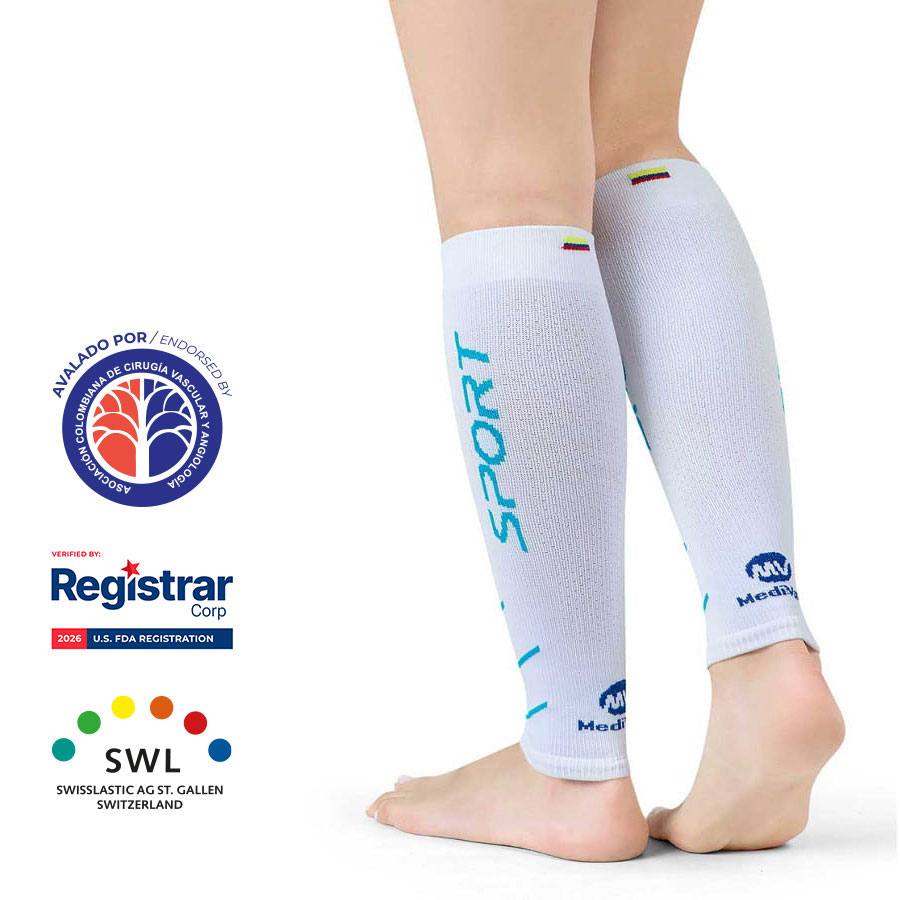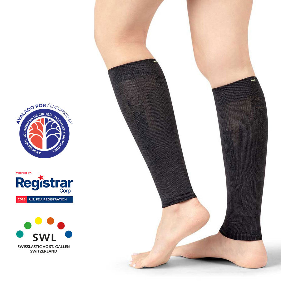 Compresión graduada de 18-23 mmHg, que favorece el retorno venoso y el flujo de la sangre al corazón.